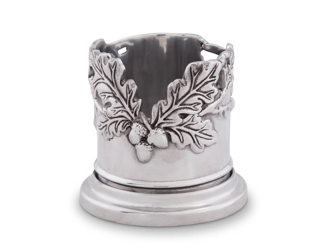 The perfect accessory for fall and winter parties, our Forest Acorn and Oak Leaf Wine Coaster is designed to be a perfect gift for any entertainer. Designed to hold a standard wine or champagne bottle, the sand-cast aluminum coaster has the added benefit
