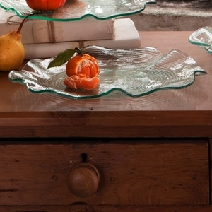 Add the Annieglass Dune Round Platter to your table the next time you need a serving piece that evokes casual elegance. Inspired by wind-sculpted lines in the sand, small lines of texture define the clear glass of this large round handmade serving platter
