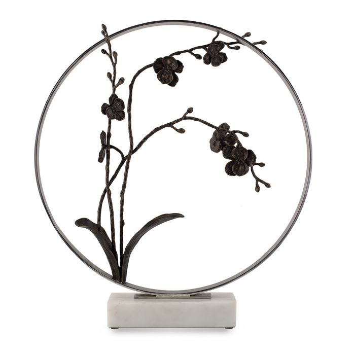 22"L x 4.25"W x 24"H, 22" Dia., Base 10"L x 4"W x 2.25"H; Oxidized Brass, Stainless Steel, Granite