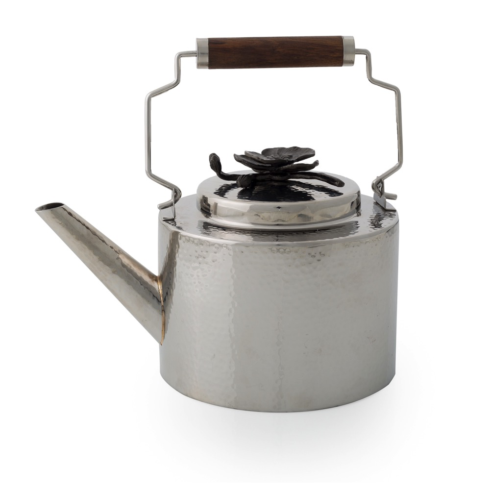 9"L x 6"W x 8.5"H, 54 Oz.; Stainless Steel, Black Nickelplate, Wood The Michael Aram Black Orchid Collection was inspired by the powerful sensuality of orchids and the rich ambiance of haute couture – strikingly simple yet full of the most extreme detail