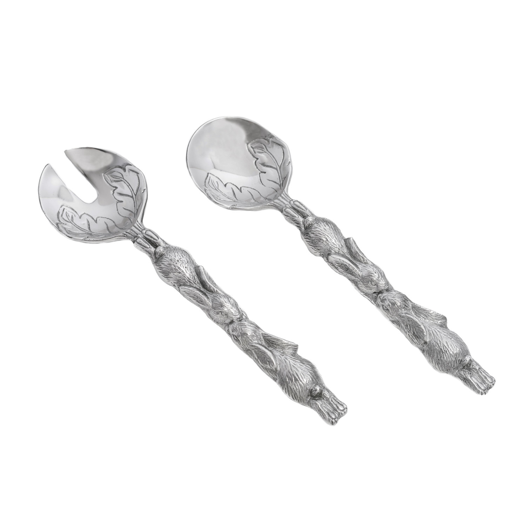 Stretch your imagination for new and innovative ways to use this versatile Bunny Serving Set from Arthur Court. Both pieces feature matching rabbits stretching from the handle and neck to meet in the middle for a friendly touch. Detailed leaves also dis