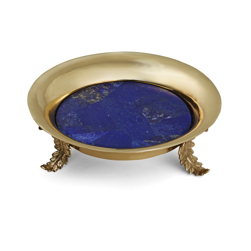 7"W x 7"L x 2"H; Brass Plate, Lapis Enchanted Garden is a collection inspired by the magical quality of spring. Sculpts of intertwined vines and stems gracefully emerge from a fantasy garden adorned with snails and semi-precious stones, while a morning