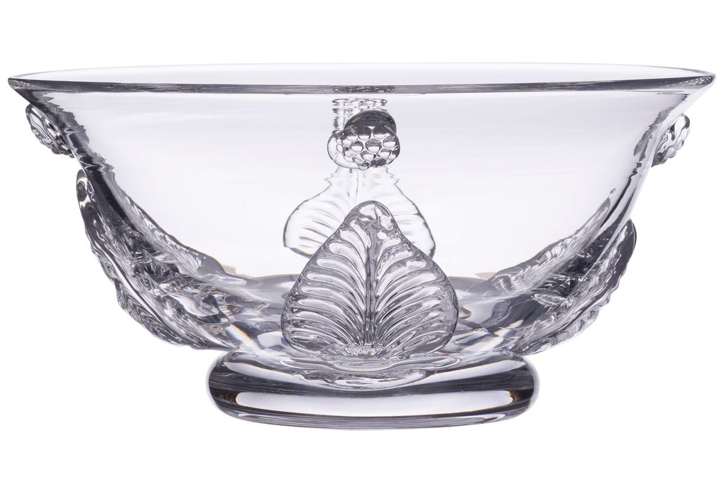Unfurling Acanthus leaves and berries in intricate glass detail cradle this accent bowl that lends refinement to everything from roasted nuts at cocktail hour to truffles in the garden tent. Measurements: 5.5" W, 2.75" H Capacity: 10 ounces Made in Czech