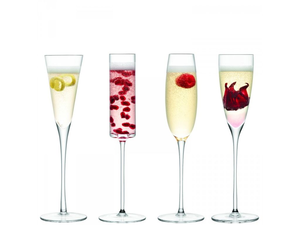 This set of assorted champagne glasses offers original drinks presentation for any occasion. Each flute is mouthblown and handmade in one of four sophisticated shapes. Every set is gift boxed. Capacity: 160ml, Height: 26cm, Width: 7cm