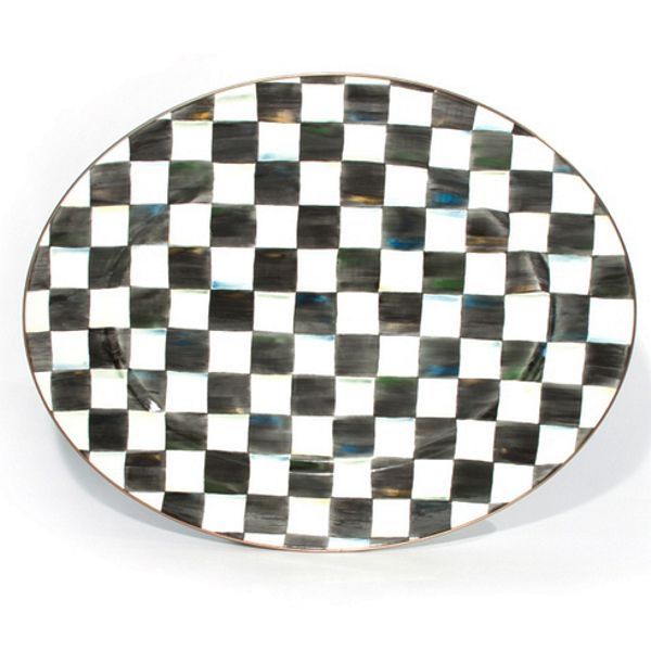 A welcome gift for the Courtly Check® collector, the Courtly Check® Large Oval Platter is a great addition to the dinner or buffet table. Hand-painted checks reveal a spectrum of accent colors. Steel underbody and bronzed stainless steel rim.
