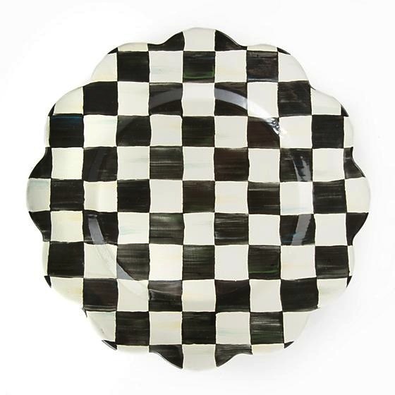 Sometimes a subtle tweak can make a classic feel unexpectedly fresh. Our Courtly Check Enamel Petal Charger/Plate updates our beloved color-dragged black-and-white checked pattern by adding an elegantly scalloped edge. Dimensions: 11.75" dia. Materials: