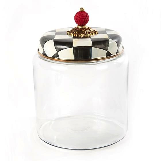Keep countertops tidy in MacKenzie-Childs style with the Large Courtly Check Kitchen Canister. With our signature color-dragged black-and-white pattern on the hand-painted enamel lid, who could blame you for wanting to overhaul the whole pantry? Collect a