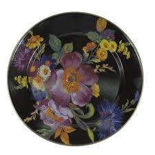 Add to cart Set a sunny table in glorious color, fresh from a country garden, with Flower Market Enamel Charger/Plates. The garden-fresh design is color-glazed and hand decorated with floral transfers on both sides. Mix and match all three colors—black, green, and wh