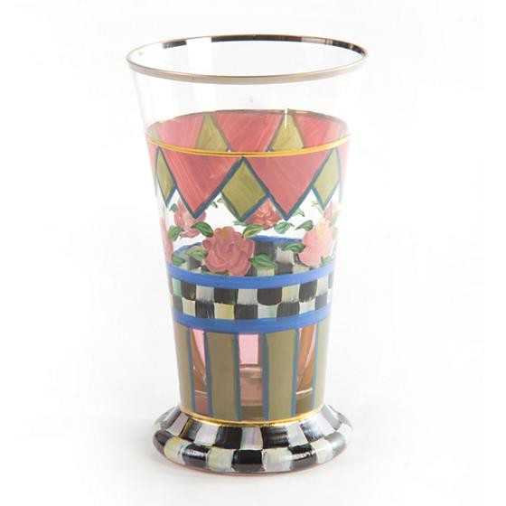 No need to whisper—you won’t need to bootleg our Speakeasy Barware. Hand-painted with a lively mix of patterns and gold lustre embellishments in quintessential MacKenzie-Childs style, these five classic bar silhouettes really make a splash. Dimensions: