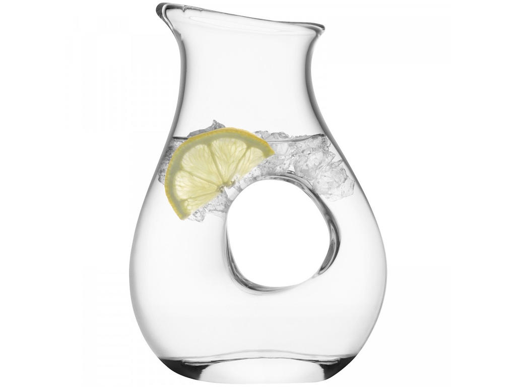DESCRIPTION The Ono jugåÕs signature curves and hole are created by artisans who expertly mould the glass whilst itåÕs still hot. The mouthblown jugåÕs sculptural form is accentuated when filled with coloured drinks and is comfortable to hold and use. DI