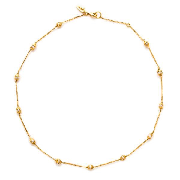 Pineapple stations on a fine, slender chain. 16.5-17.5 inches. 24K gold plate. Julie Vos hallmark.