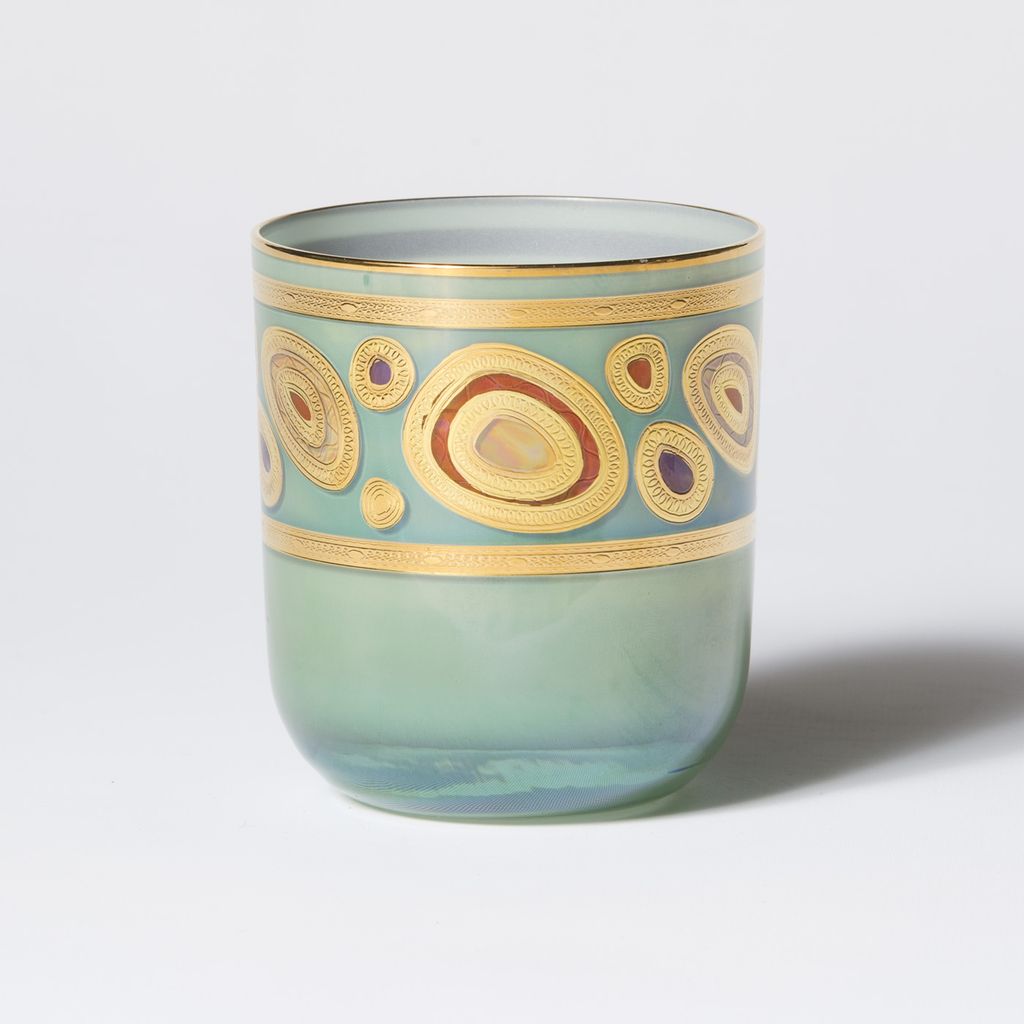 Our Regalia collection was inspired by the ornate emblems and decorations that are indicative of royalty. The Regalia Orange Double Old Fashioned is handpainted in 14-karat gold. 3.75"H, 8 oz