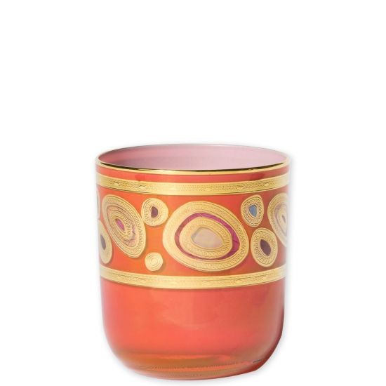 Our Regalia collection was inspired by the ornate emblems and decorations that are indicative of royalty. The Regalia Orange Double Old Fashioned is handpainted in 14-karat gold. 3.75"H, 8 oz