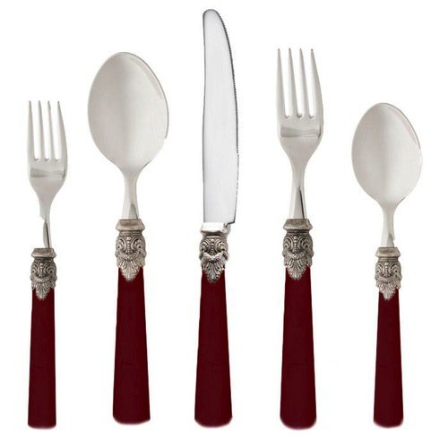 The Rosanna Napoleon Flatware 5 Piece Set includes 2 forks, 2 spoons, and 1 knife, which is available in multiple finishes that you can choose from as per your aesthetic sense. Made out of 18/10 stainless steel with ABS plastic handle, this set is strong,