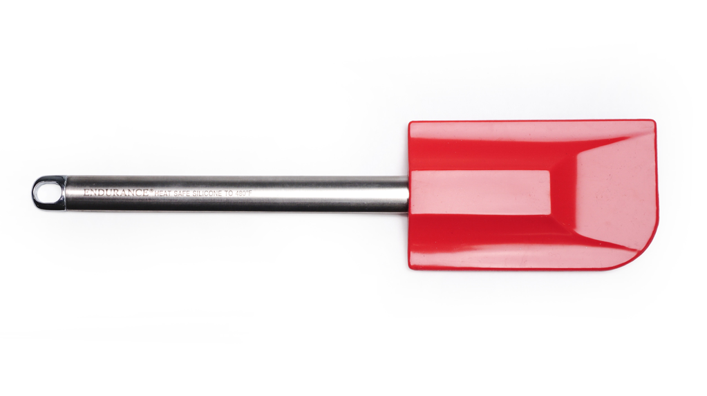 This workhorse spatula is made with colorful orange silicone which is extremely flexible and heat safe up to 480°F / 250°C. The 18/8 stainless steel handle has a tubular oval shape for a comfortable grip. Dishwasher safe. Spatula measures 2-3/4″ x 4-3/8″