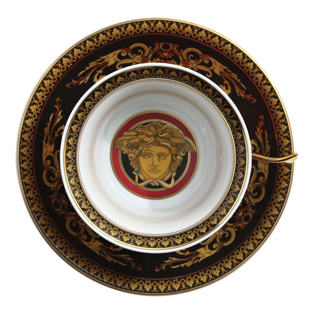 Add to cart The Medusa collection by Gianni Versace reflects the unmistakably rich, color-intensive world of Versace. The main focal point is a magnificent, gold-colored Medusa head, surrounded by ornate baroque decorations. This collection will serve as a brilliant