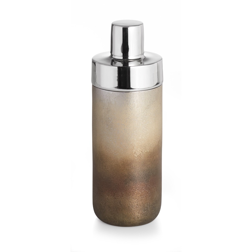 8.25"H, 3.25" Dia., 26 Oz.; Patinated Stainless Steel, Stainless Steel The Torched Collection explores the magic of metal when put under intense heat. These bold, abstract pieces suggest radiant light and landscape horizons. The unpredictability of heat