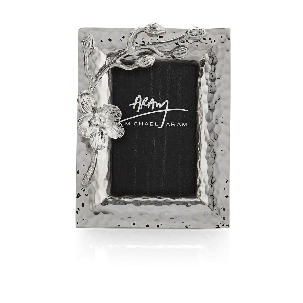 The Michael Aram White Orchid Collection illuminates the ethereal spirit of the orchid flower. Evocative of purity, delicacy, femininity and grace, the white metal version offers a strikingly different appeal than its black counterpart. While the sculptur